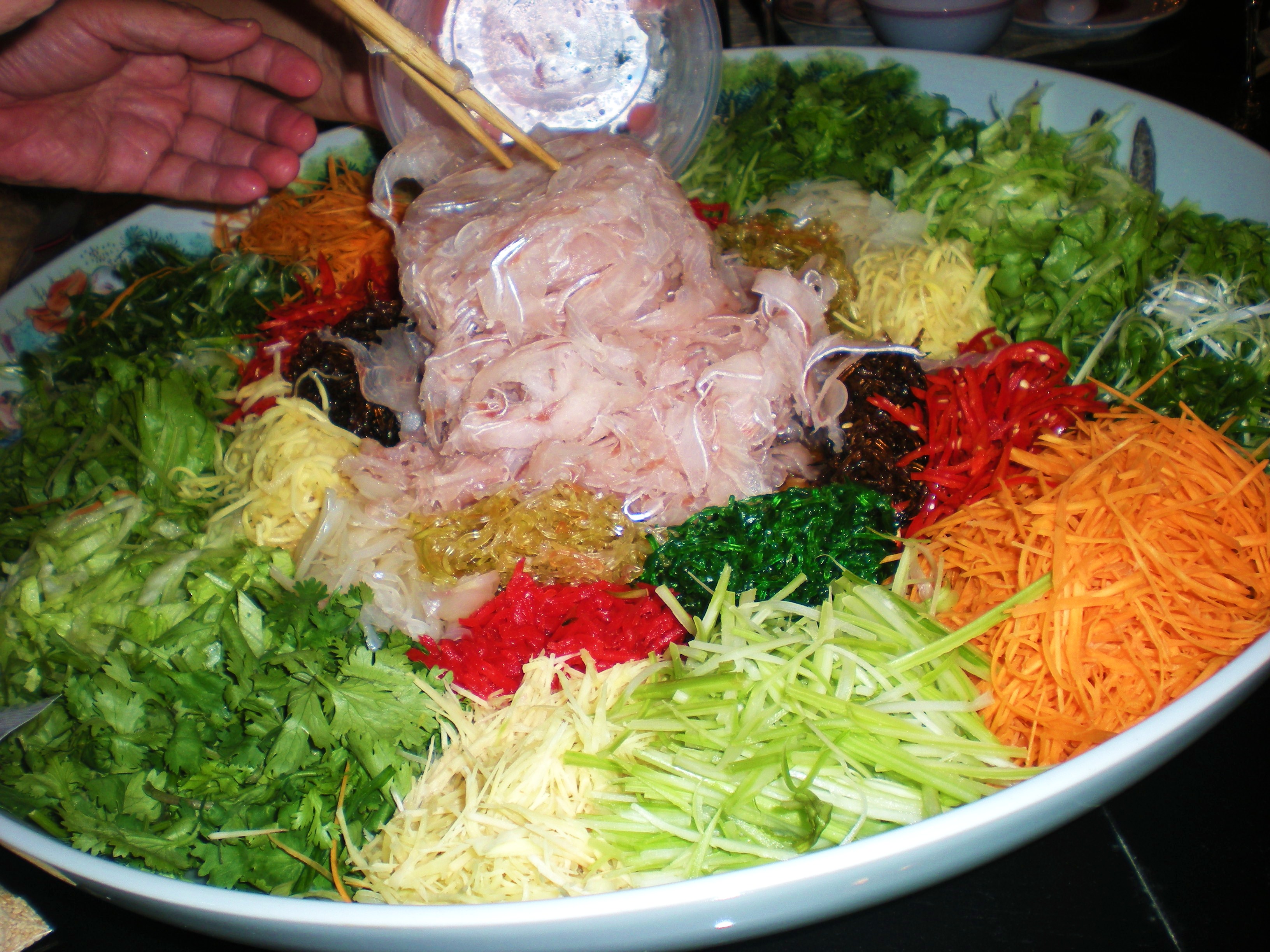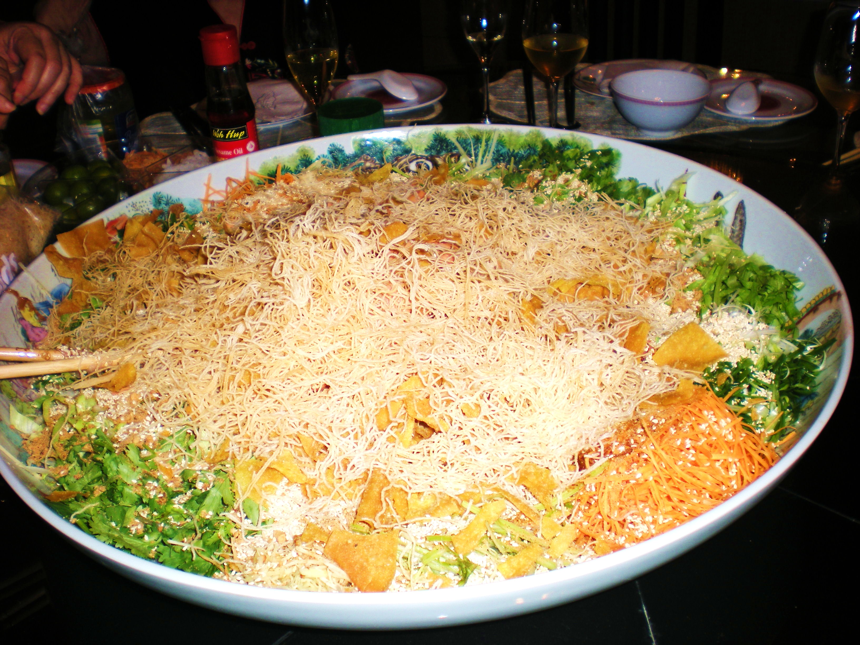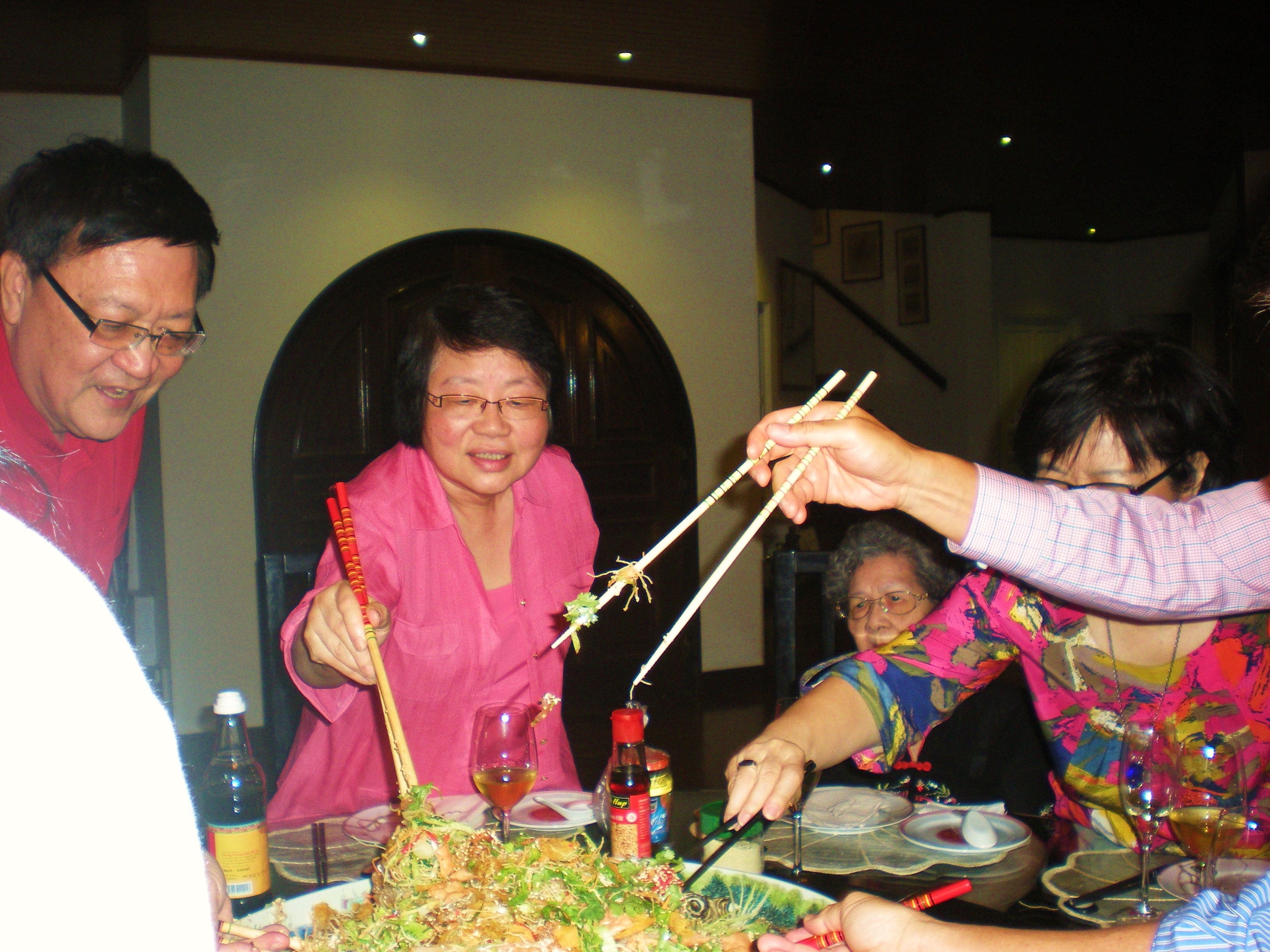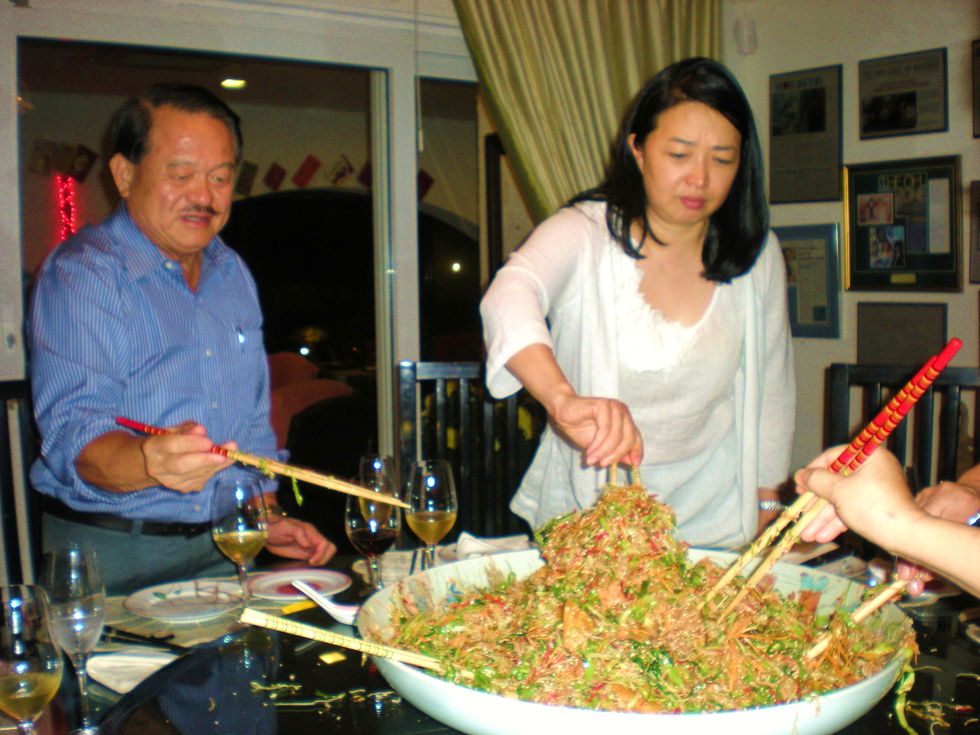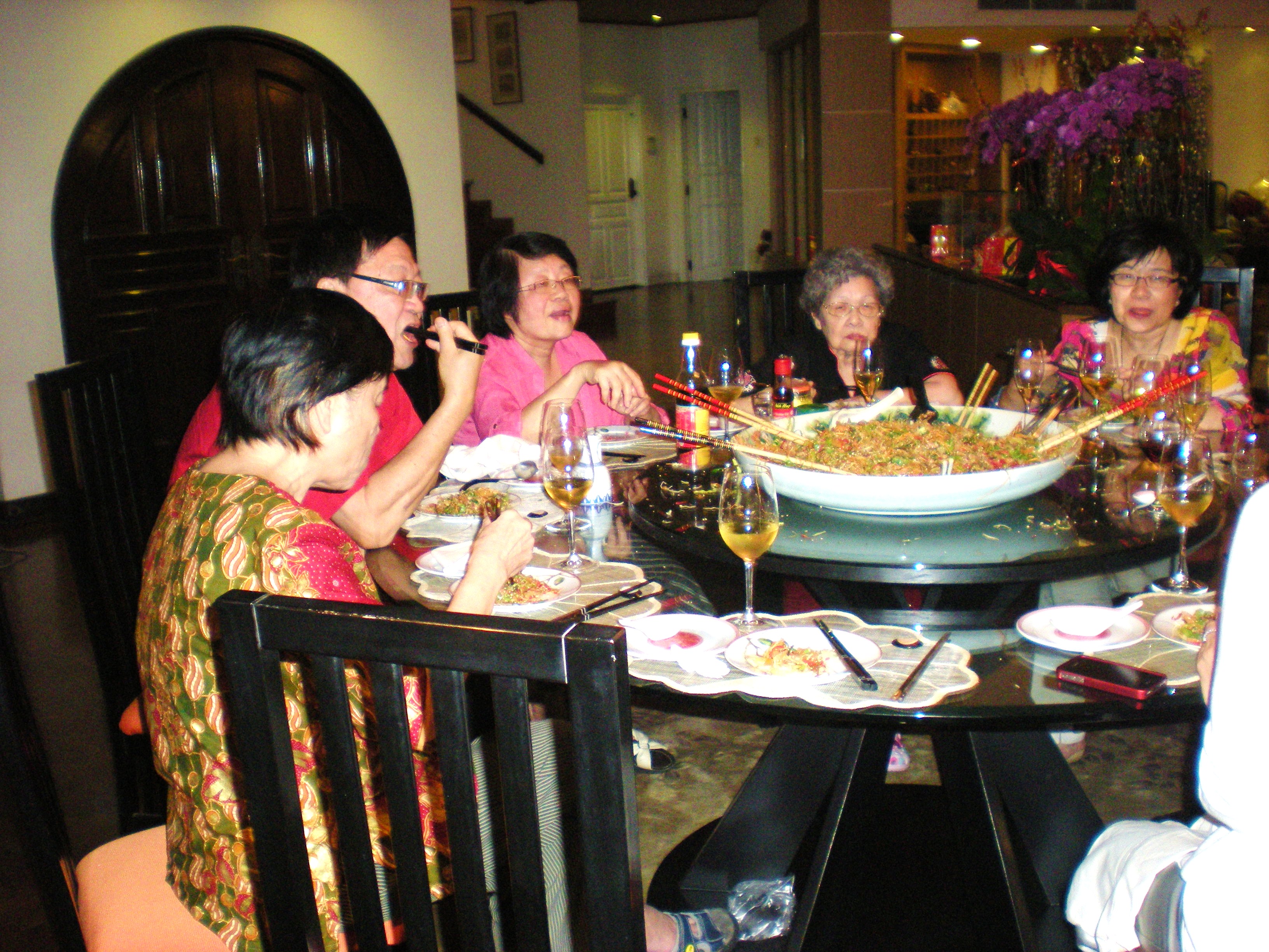 In the meanwhile here is to the King of all YuiSang/鱼生. Jessie & Frank (Ivy’s cousins) make this best raw fish salad dish( posting 13 Feb 2010 – YuiSang/鱼生). They use 28 ingredients with tons of fish, all freshly and thinly hand-sliced by the family. Jessie & Frank’s YuiSang is most look forward dish every CNY. Will someday list all the 28 ingredients when Jessie is ready to write them down. Thank you Les & Ivy and Jessie & Frank. In their wonderful company + porpor, Jo, Miji San and her husband, this scrumptious dish was consumed with champagne on Sat night, yummy yum yum 🙂