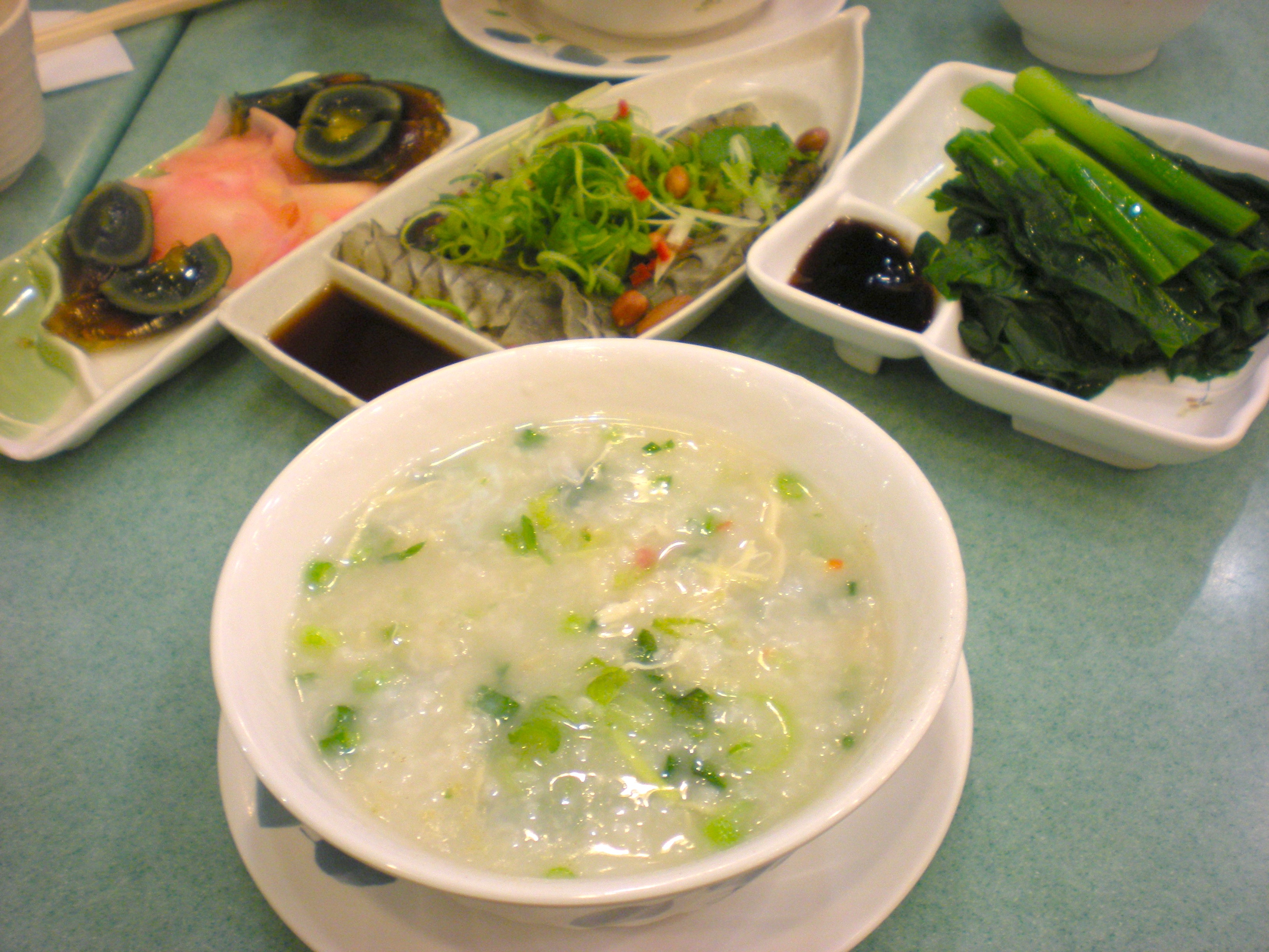 Sun: Back to HKG in time for dinner@TrustyKingCongee***tasty chicken congee and the first time to taste cooked fish skin, crunchy and quite nice. The century year old egg, veggie are alright and good soya bean milk. Thank you Henry for being my translator and for keeping me safe in China 🙂