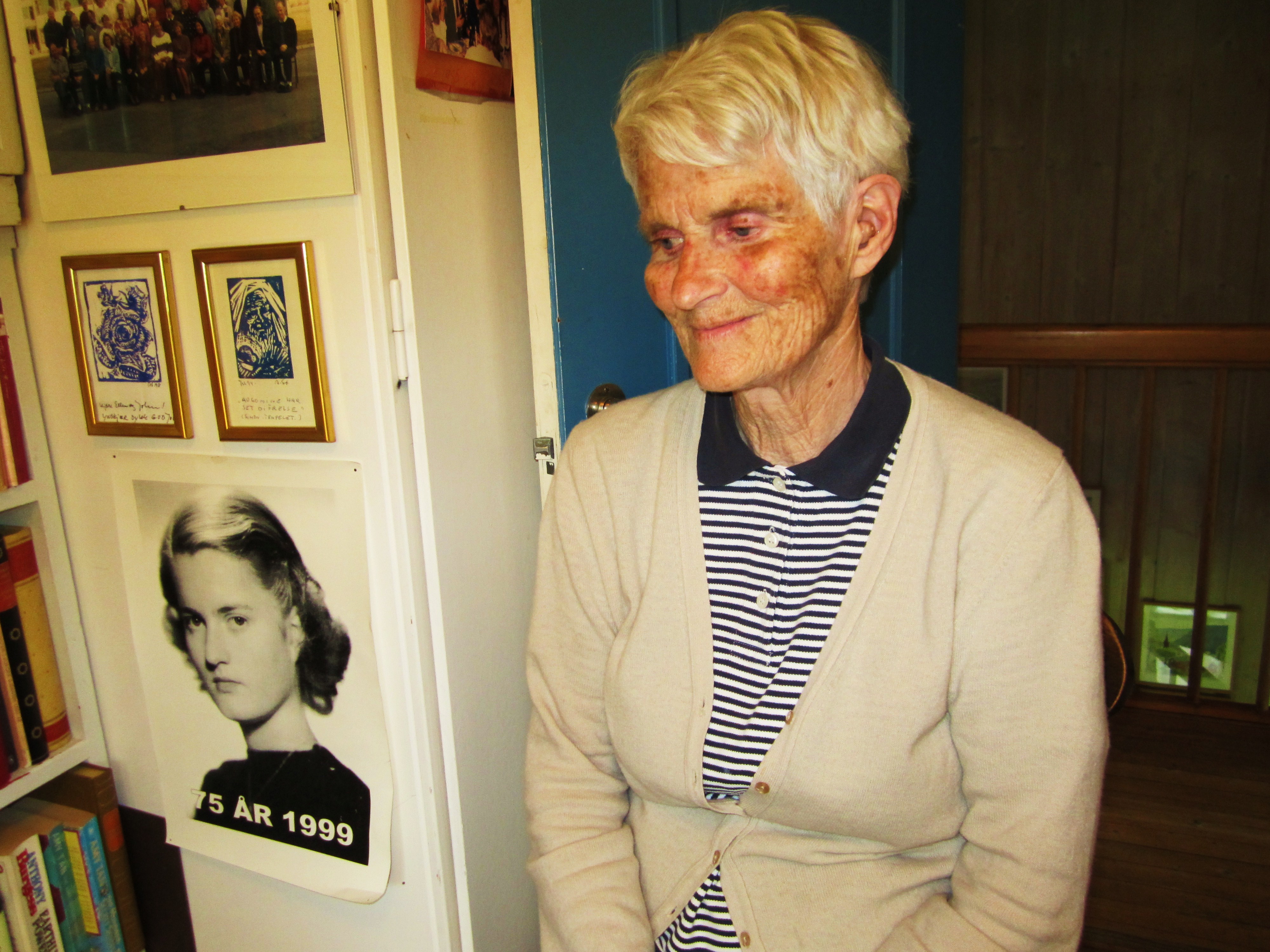 Yesterday was a rainy walk from Sandvika to Nesøya (app 1hr) to visit L&M‘s grandmother, Ellen. We had a lovely afternoon chatting away over a pot of tea with smoked salmon, cheese and her delicious home-made oatmeal biscuits which are the best. She will still insist on having a perfectly pressed linen table-cloth and napkins. Looking thru’ her childhood pix accompanied with the stories was one of the high points. Thank you Ellen for her graciousness and time. She will be 87 in Oct.