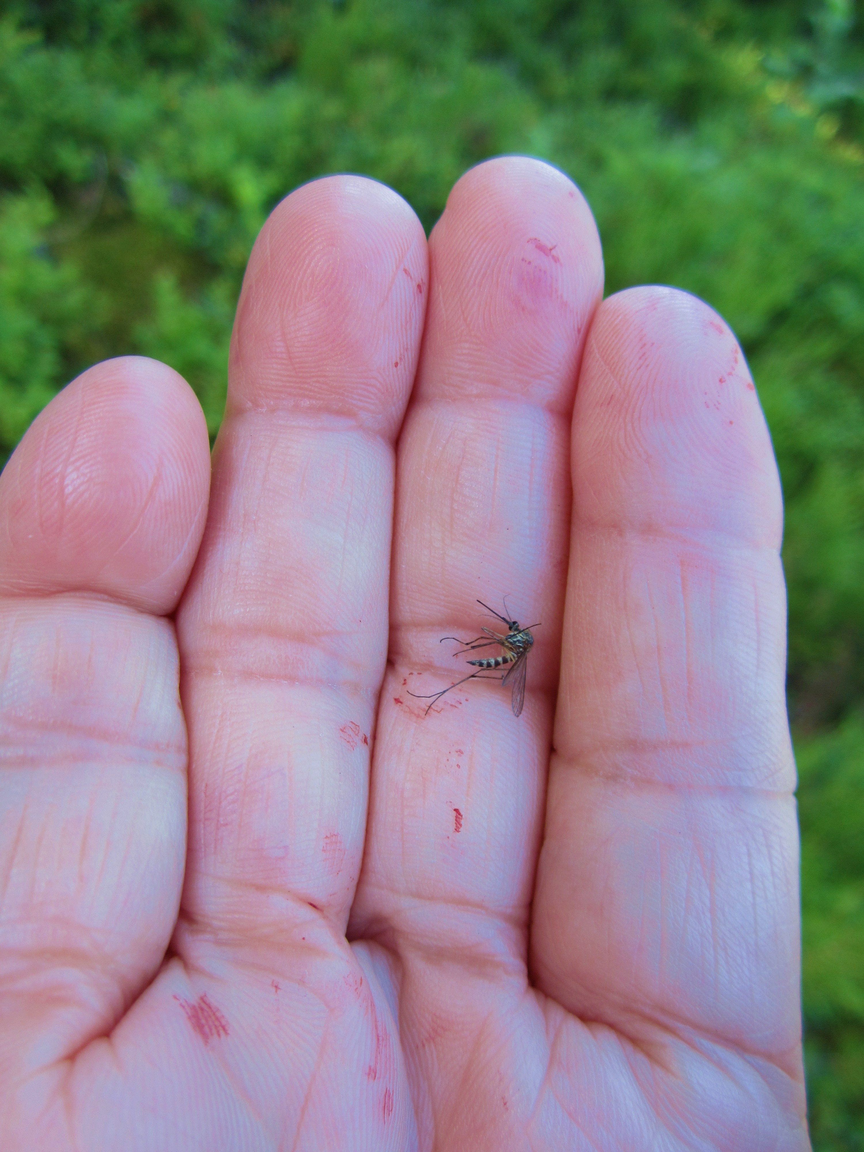 Got slightly diverted but on such a lovely day, with mobile on-hand and wild blueberries to snack on, no worries. These again are the size of my little finger nail, they are really blue inside and stains but yummy! Did not meet a single soul, but mozzies are in the air and the patches helped. Norwegian mozzies are big but are rather slow; the stains on the hand is not blood but blueberry!