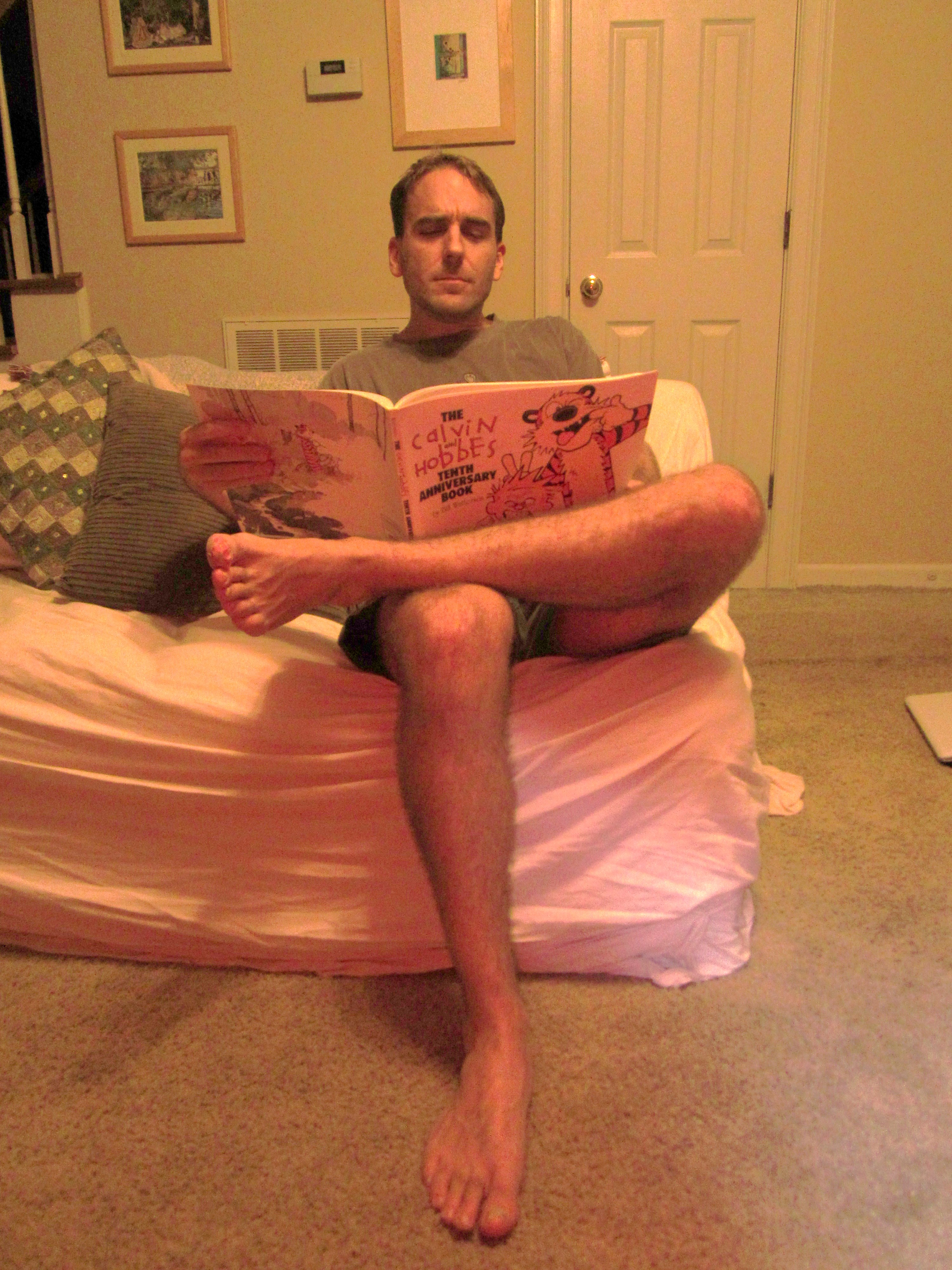 Linn Hall’s mother, Amy Lam, is coming over!!!!! Her children, Katy, age 9, Ellie, age 6, John, age 4, Sophie, age 2, and probably James, age 0, are very excited. Ms. Amy Lam’s arrival is making Linn Hall have the family clean up. Linn Hall is cleaning the kitchen, Katy and Ellie are cleaning their rooms, the bathroom in Katy’s room, and did their laundry, and John is cleaning his room. Sophie and James took a nap. Jeff Hall, the father, read Calvin and Hobbes.