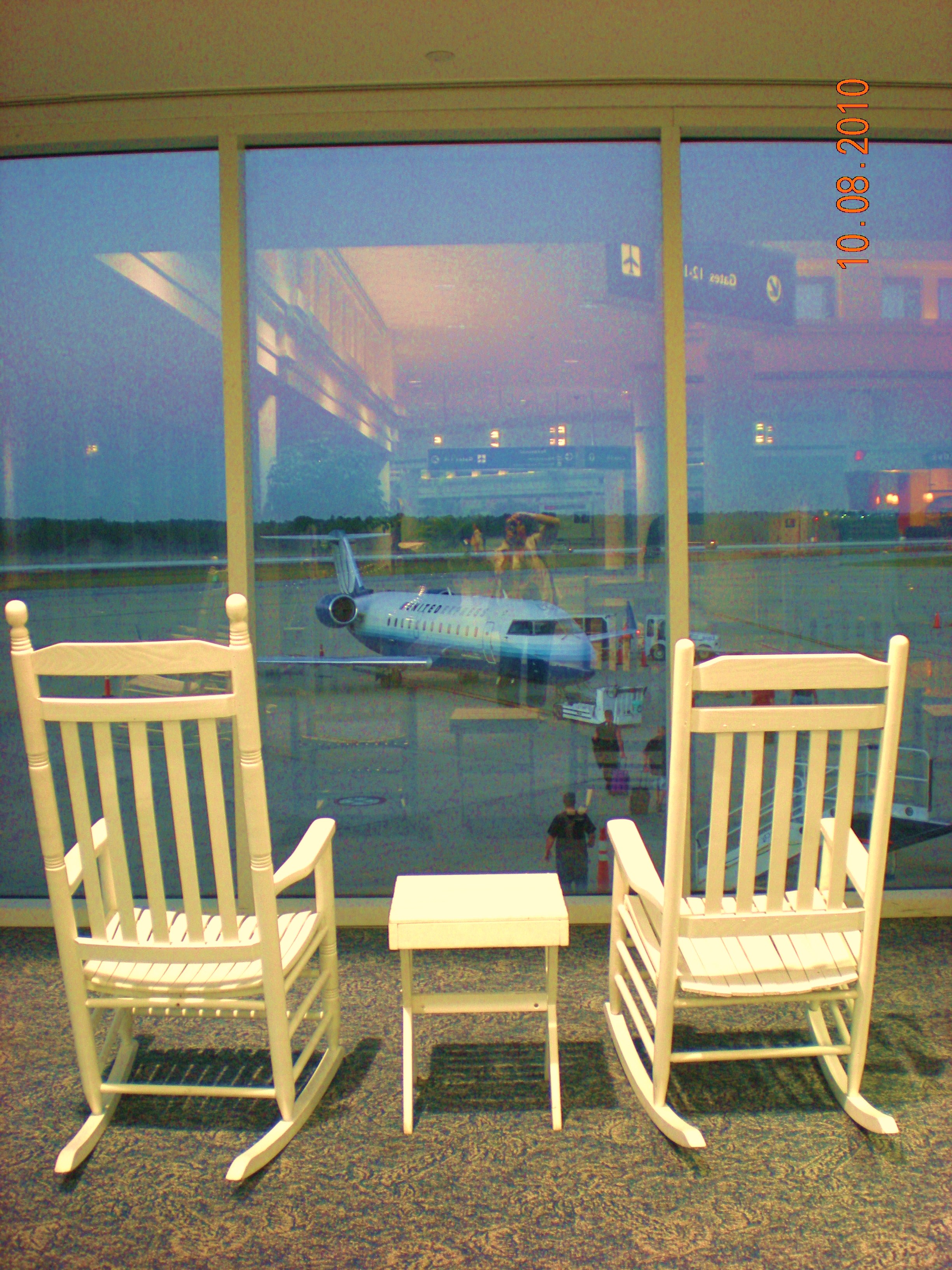 Dep 8 Nov 0730hrs CAE-ATL, flying time 40min. Thank you Linn for driving me to this charming airport, the only airport I have been with white rocking chairs!