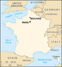 Beauvais, a city of 59,000 people, is located about 54 miles north of Paris in the Picardy region of Northern France, famous for its cathedrals, its role in World War I and its chateaux/castles. It is also known for its dairy and beef cattle.