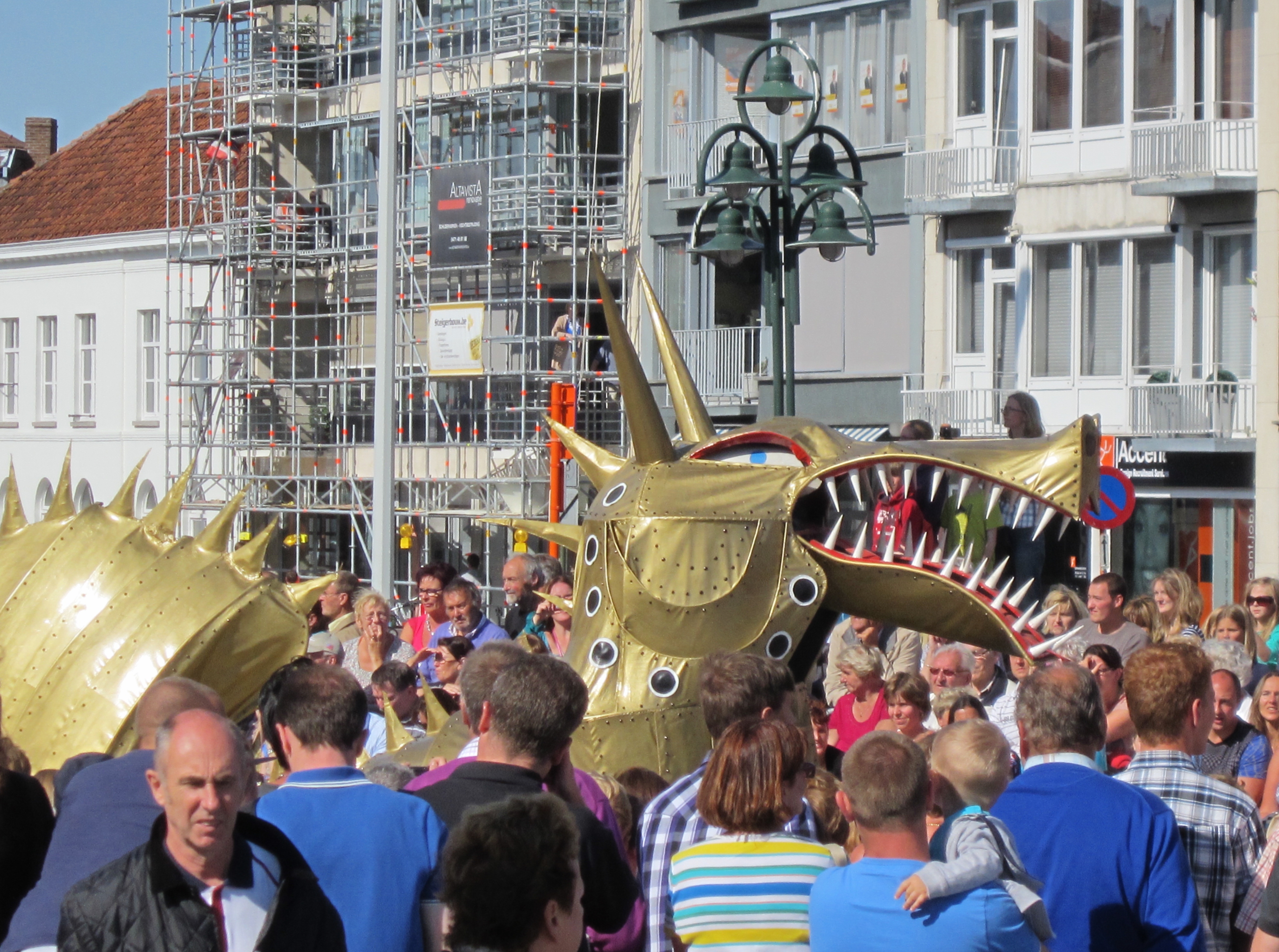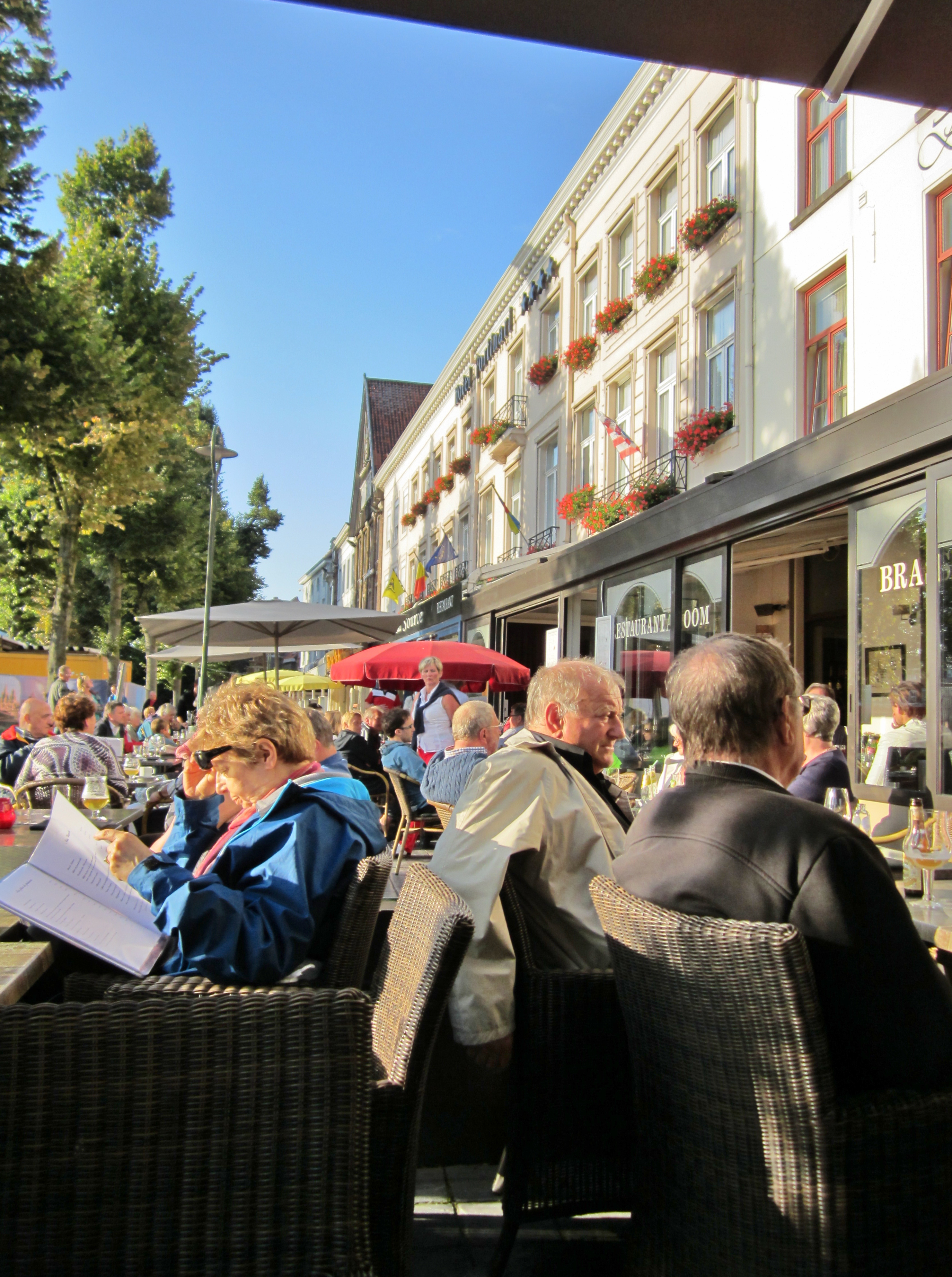 Fun to walk around admiring the town and meeting up with the pageant at different cross-roads. Ended the day with a Belgium stew for dinner by the concert hall with a public car park under the building. Appreciations to A&K for this exciting day.